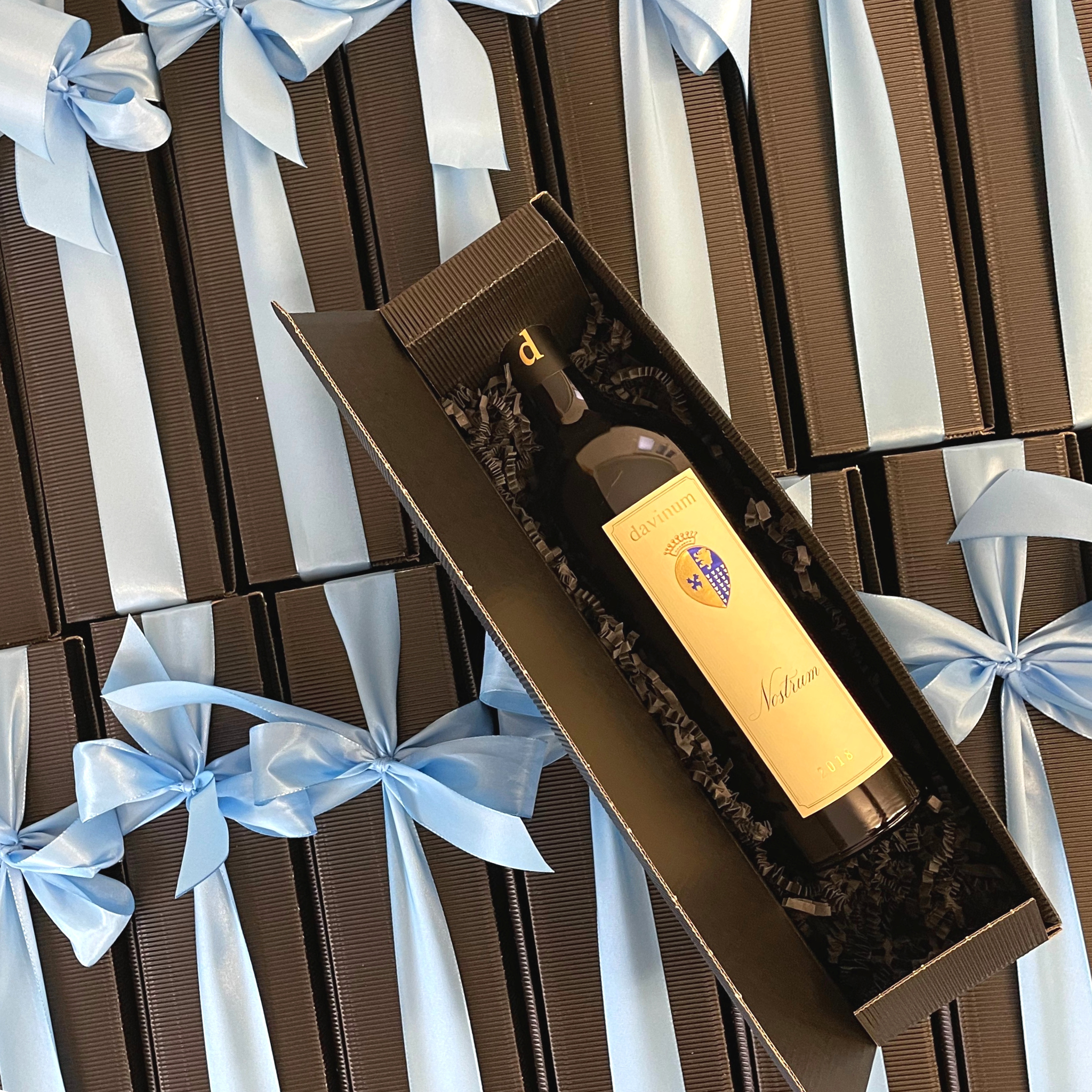Unsere schwarzen Geschenkboxen sind ab CHF 59.90/Stk. erhältlich. Wir veredeln sie mit einer Schleife, passend zu den Farben deiner Firma, und verleihen dem Geschenk damit die besondere italienische Eleganz.