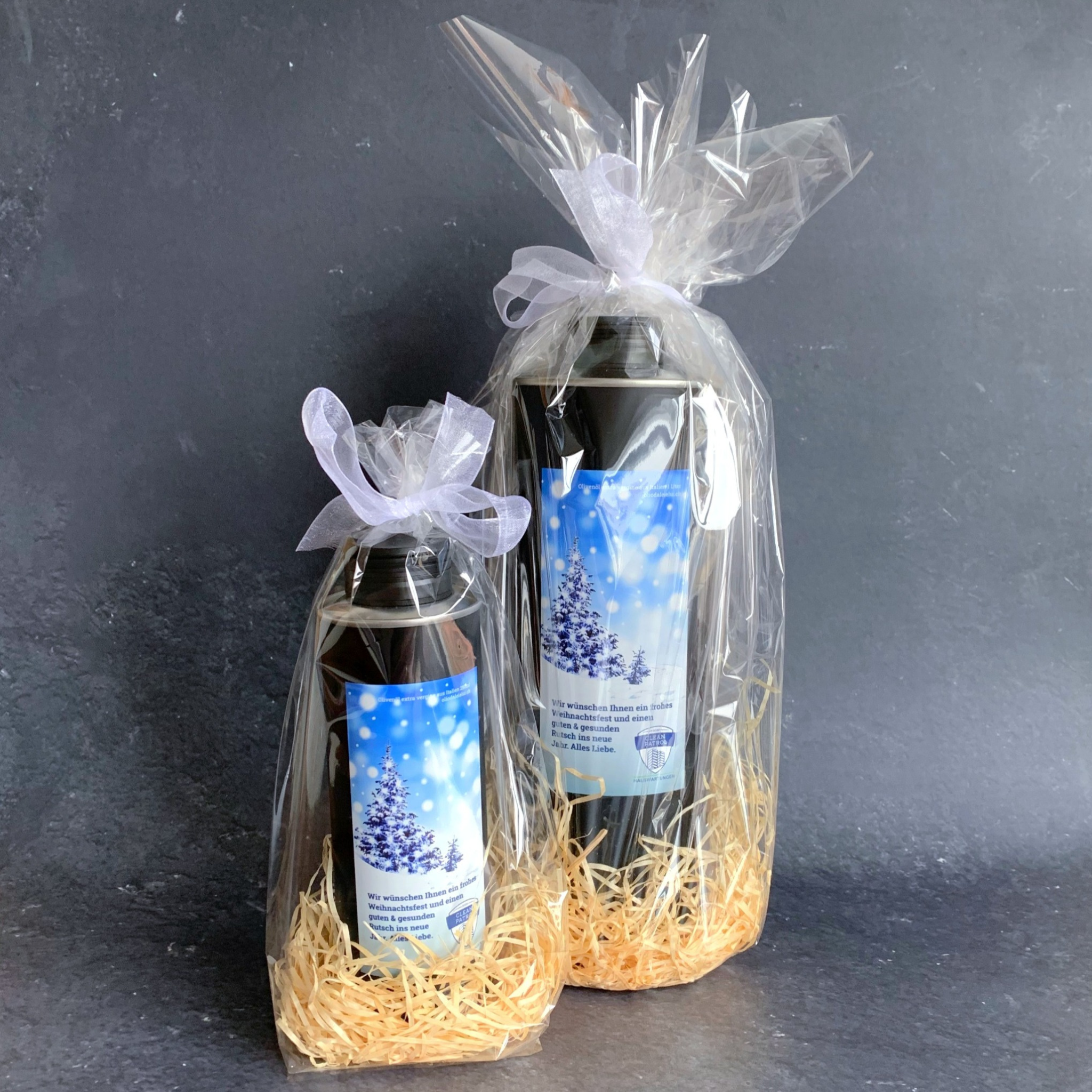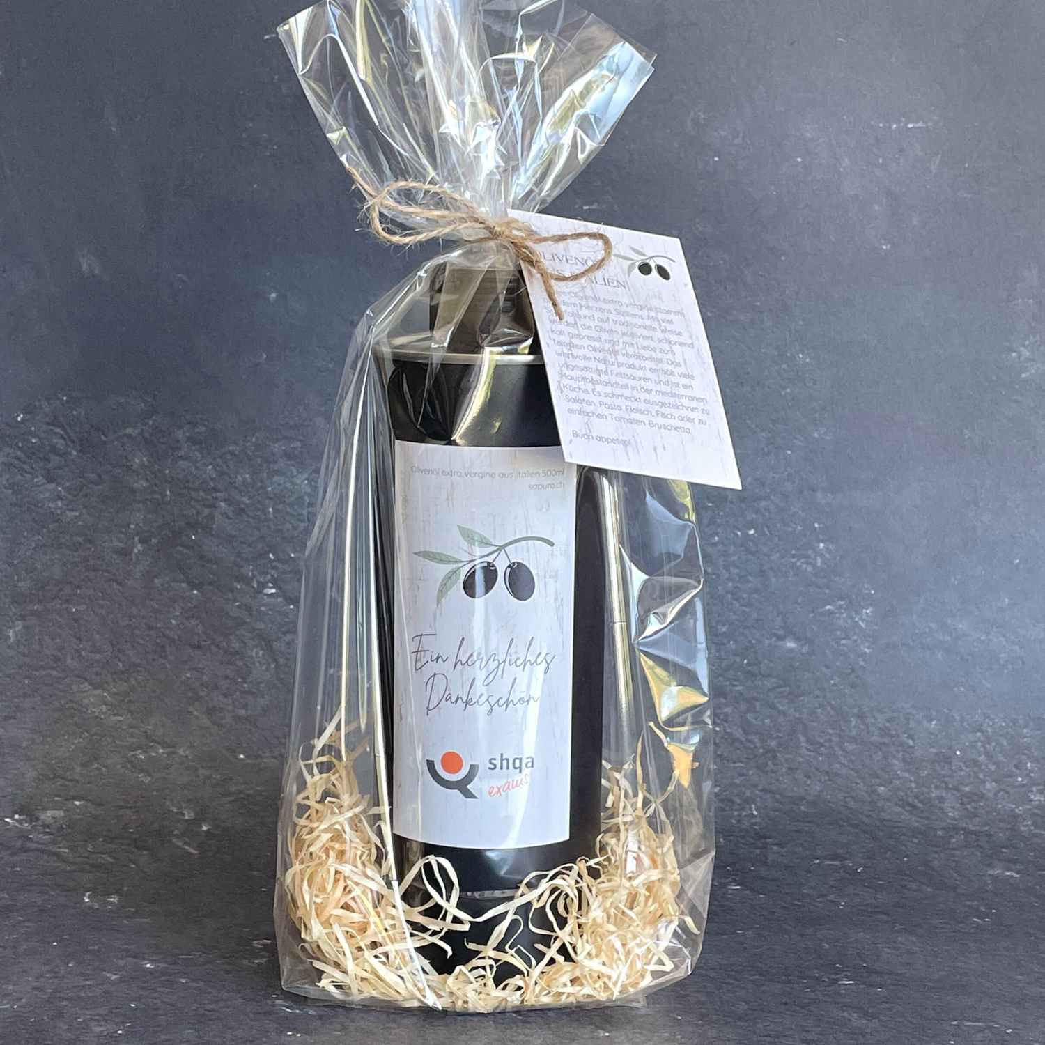 Die individuelle Gestaltung ist ab 10 Stück und CHF 19.90/Stk. möglich. Auf Wunsch verpacken wir die Olivenölflaschen in einer Geschenkverpackung und veredeln sie mit einer individuellen Grusskarte aus deiner Firma.