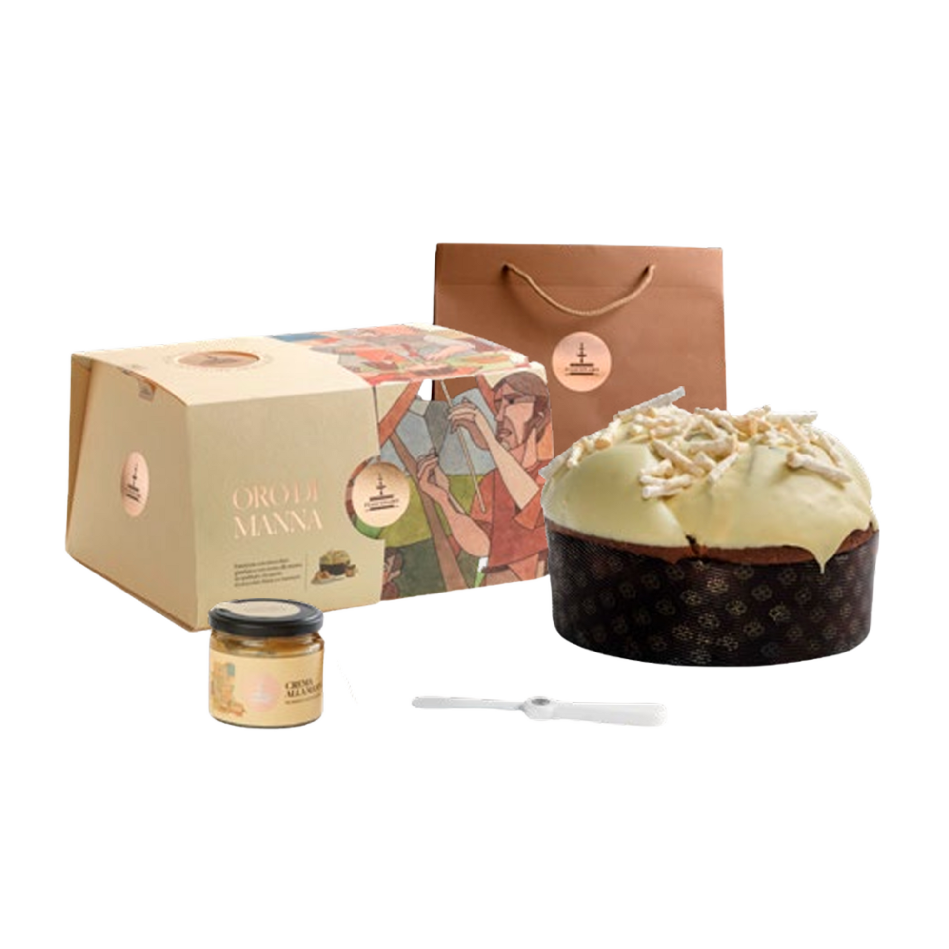 Der Panettone Oro di Manna ist eine edle Rarität aus Sizilien. Der natürlich gesäuerte Panettone wird mit feiner Gianduia-Schokolade verfeinert, mit weisser Schokolade überzogen und mit Stücken der kostbaren Manna dekoriert – einer Süssigkeit, die ausschliesslich in den Madonien-Bergen gewonnen wird.